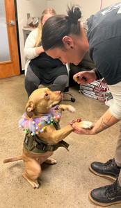 Meet Maple Jean, a 3-year-old pittie mix! She brings a special love that blossoms with time. She can take a while to warm up to new people, but give her a little time and routine and she shines—full of goofy personality, loyal snuggles, and an unshakable bond with her person. She’s playful and happiest doing zoomies in a fenced yard, then curling up for a Netflix-and-snuggles kind of evening. No marathon walks required!